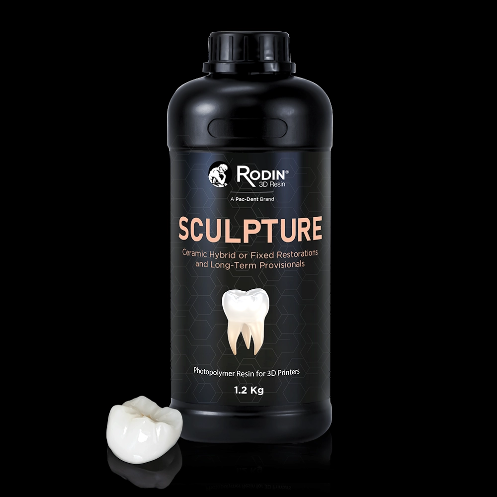 Rodin Sculpture 1.0 is a methacrylate-based, biocompatible ceramic-nanohybrid resin meticulously engineered for the additive manufacturing of permanent dental restorations—including crowns, inlays, onlays, veneers, bridges, and All-on-X provisional prosthetics—using advanced 3D printing technology. It ensures aesthetic fidelity, mechanical resilience, and clinical precision.